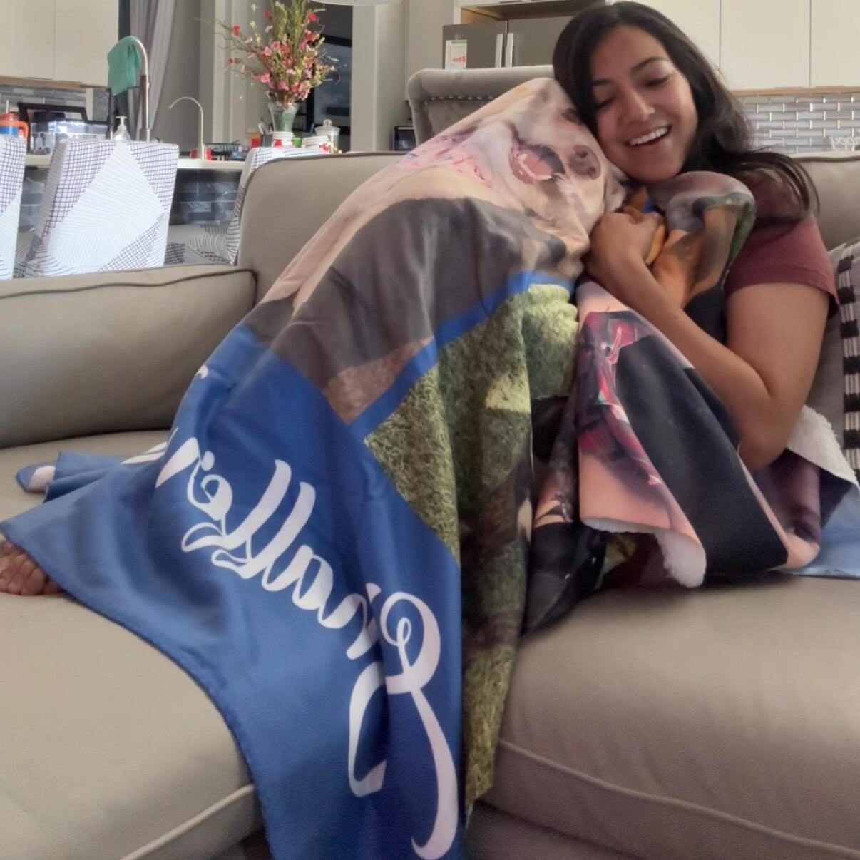 I’m absolutely in love with this custom blanket that perfect showcases my babies and fur-babies. The pictures came out amazingly clear. The blanket is soft and thick with a high quality sherpa on one side and smooth finish on the photo side. This is NOT your average store bought thin blanket, this one is thick! It was so easy to make with easy to use layouts. Just pick how many photos you want to use, choose a color, pick a name and ship! Now my mom and mother in law want one too. It’s the perfect gift for yourself or loved one!